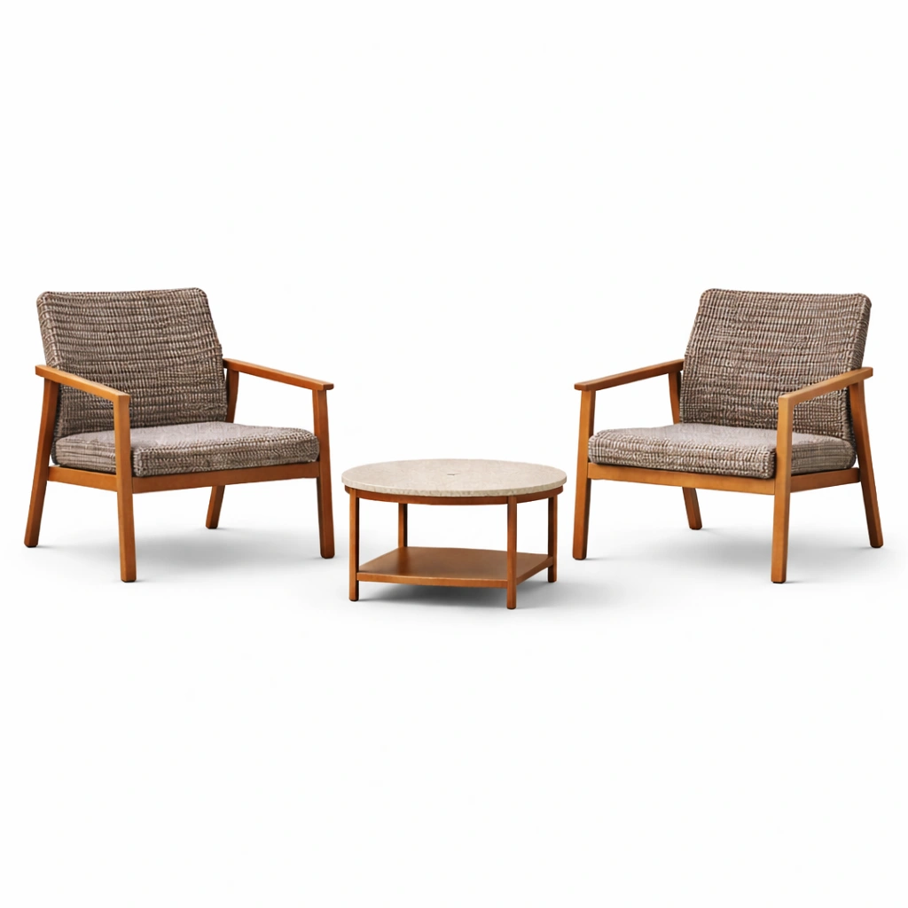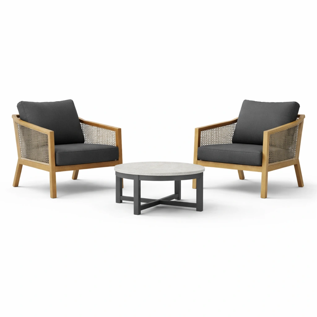 Set da giardino con poltrone in legno teak e tavolino in cemento