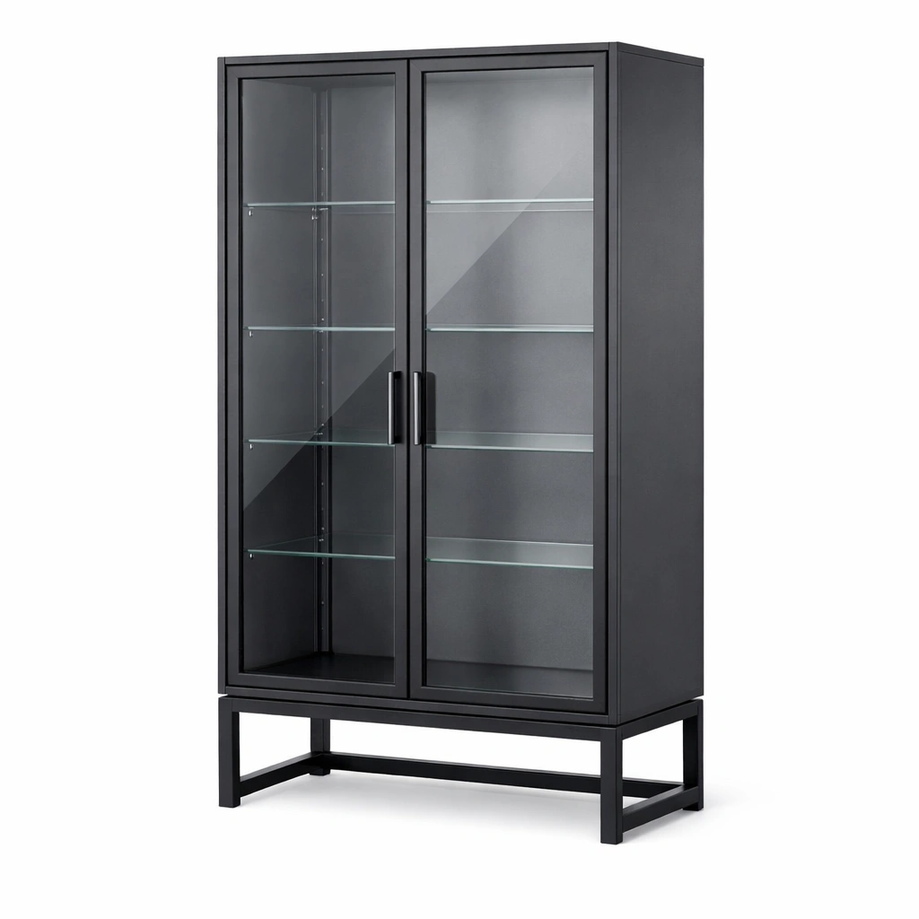 Vetrina in acciaio nero con vetro temperato