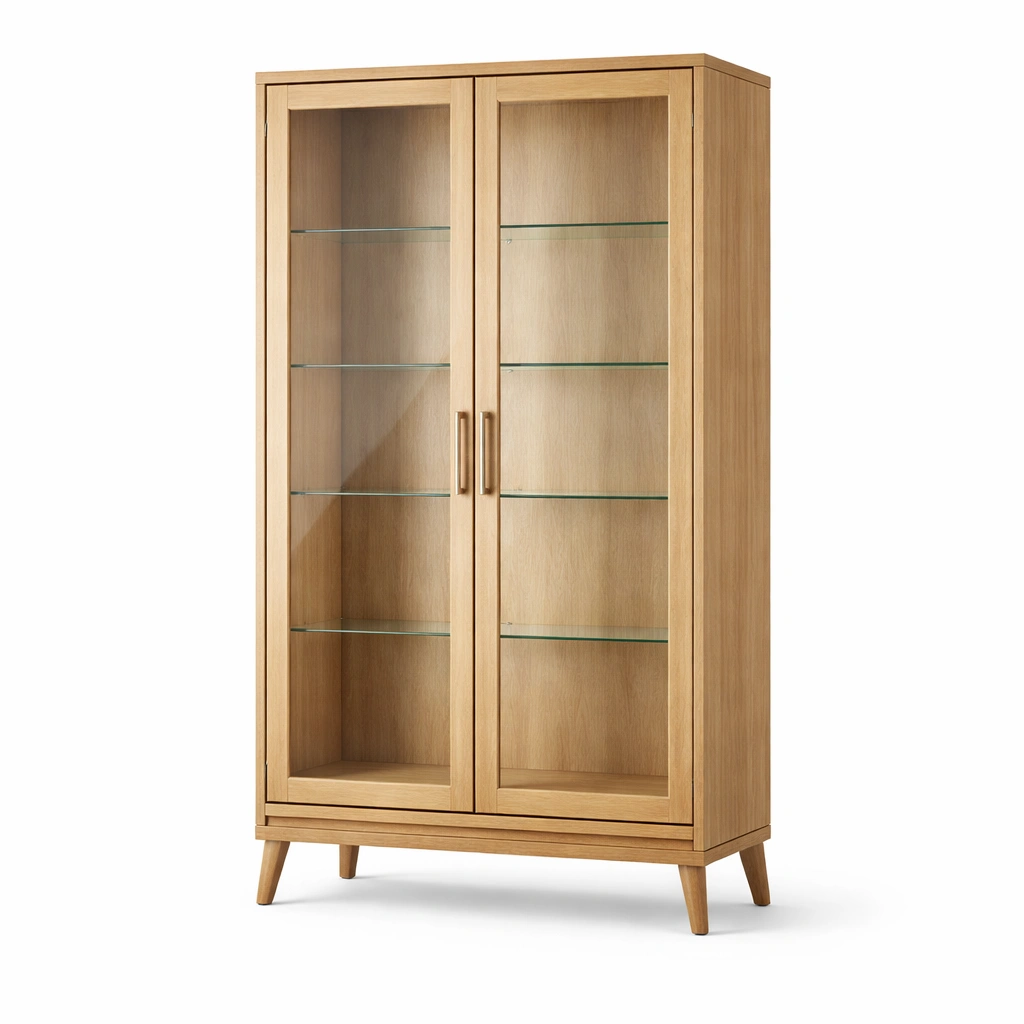 Vetrina in legno con ripiani in vetro